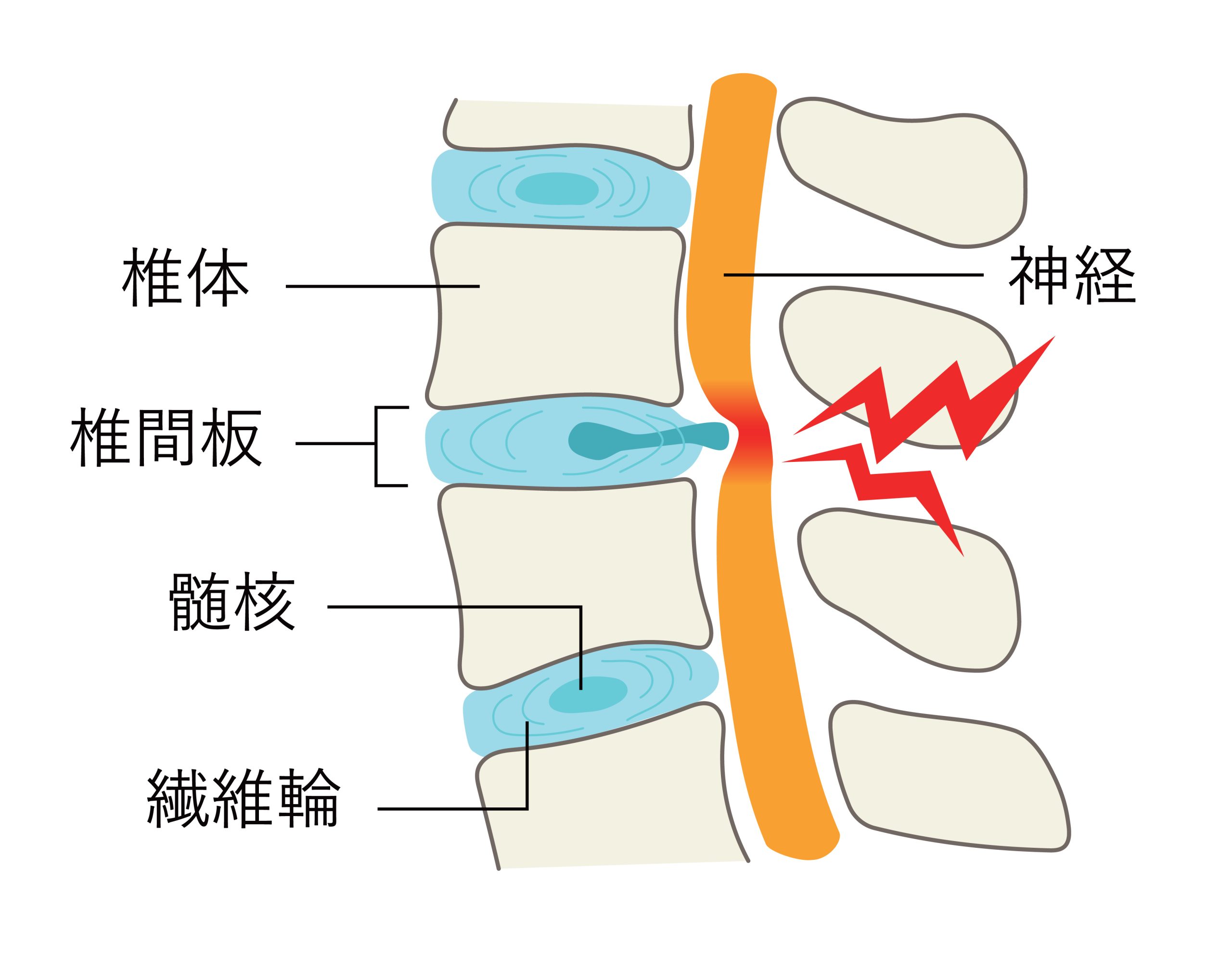 ヘルニアとは、背骨を構成する役割の一つである椎間板が傷んで背骨から飛び出してしまう状態の事を指します👆️